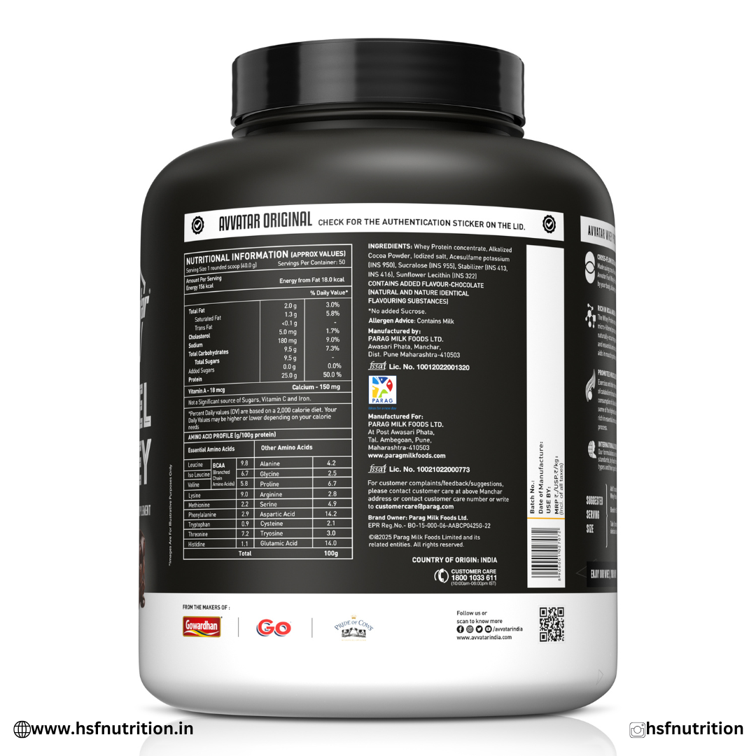 Avvatar Fuel Whey is a high-quality whey protein supplement designed to support lean muscle growth, faster recovery, and strength performance. Made using fresh cow’s milk and processed with advanced filtration technology, it delivers clean, fast-absorbing protein with superior amino acid profile.