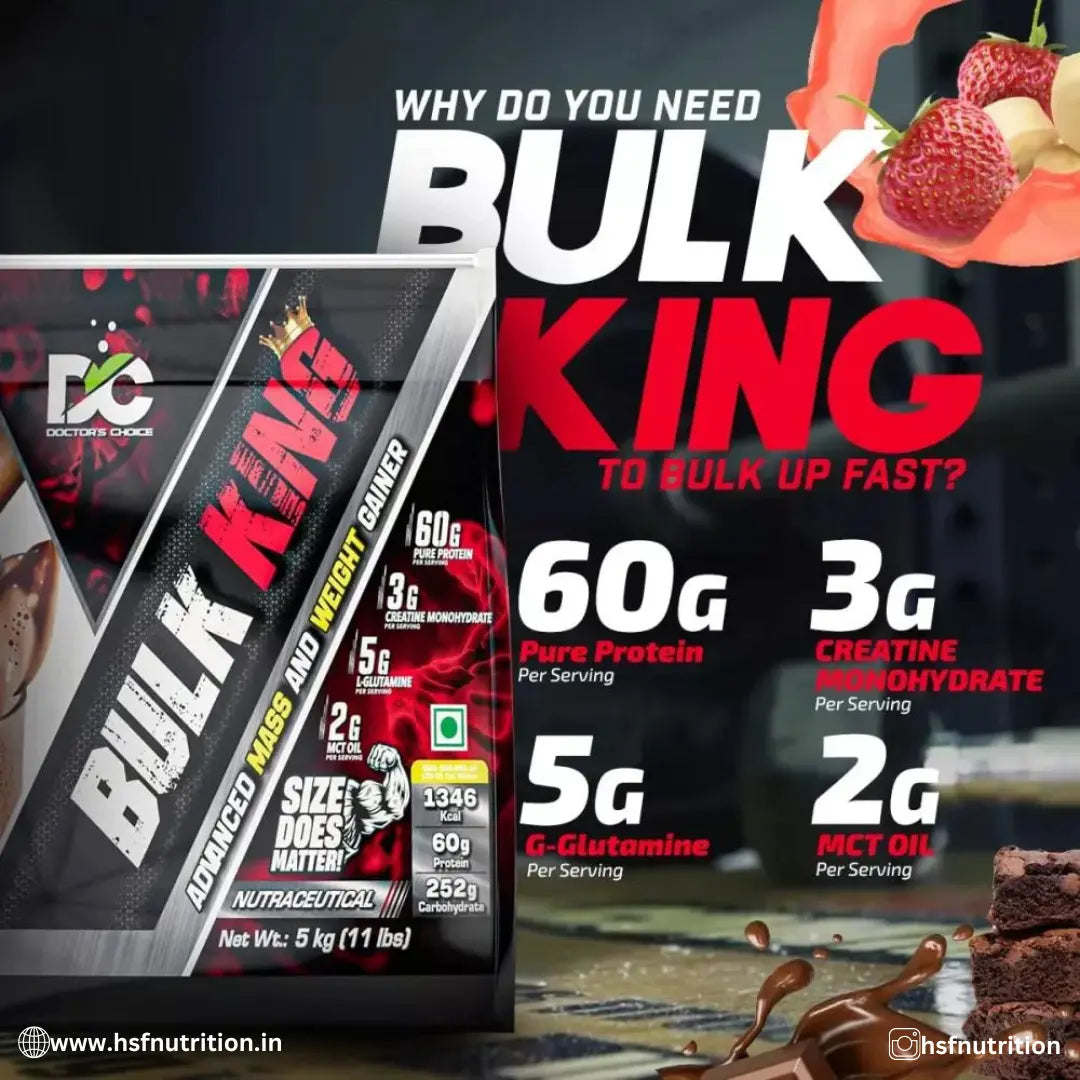 ✅Calorie Dense Fuel: Doctor Choice Bulk king 5kg contains a well-balanced amount of glutamine, creatine, carbs, and a quality protein for muscle growth.