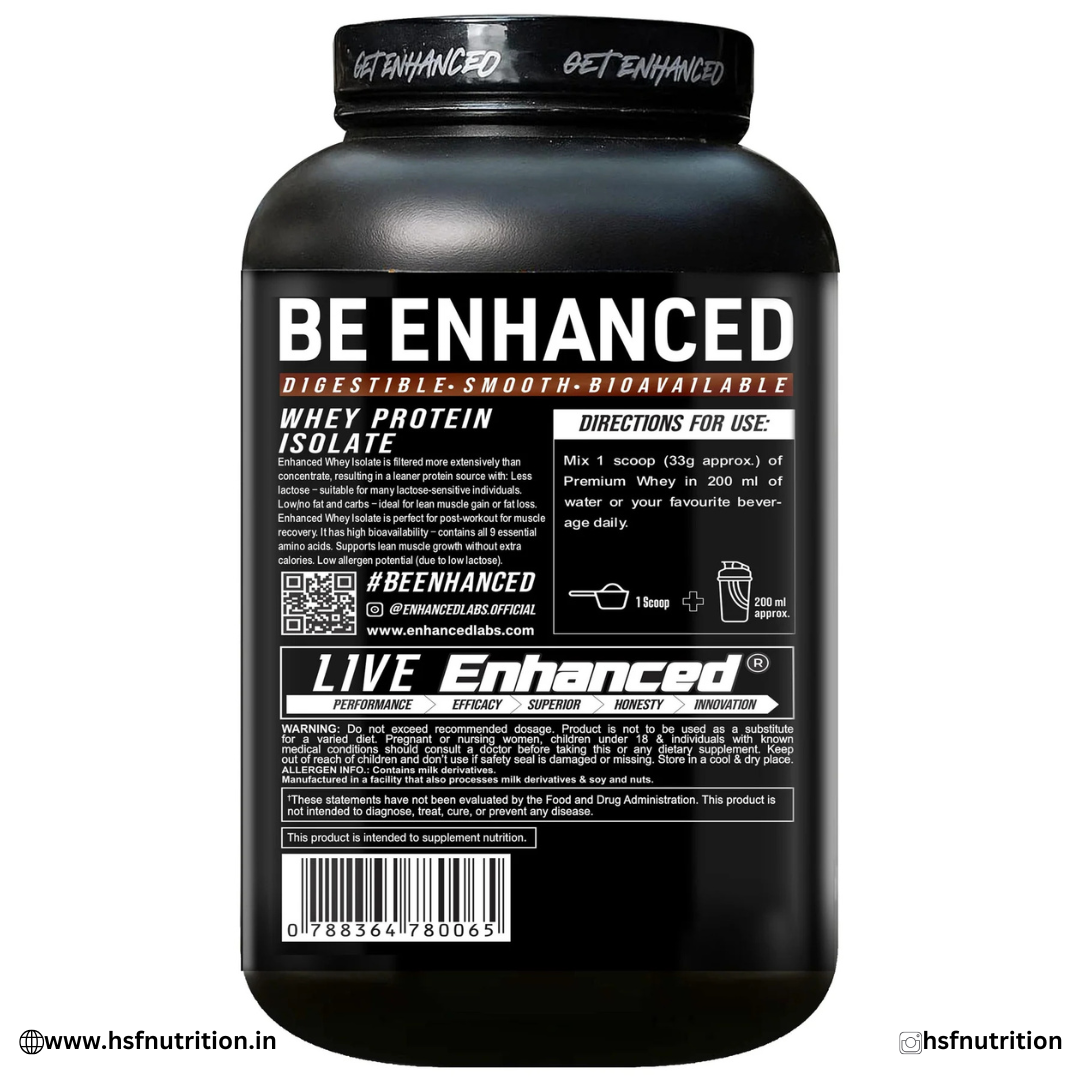 ✅Premium Whey Protein Isolate for Lean Muscle Growth – Enhanced Whey Isolate is a high-quality, fast-absorbing whey protein designed to support lean muscle building, recovery, and performance. With superior filtration technology, it delivers high bioavailability, low fat, and low carbs — perfect for serious athletes and fitness enthusiasts.