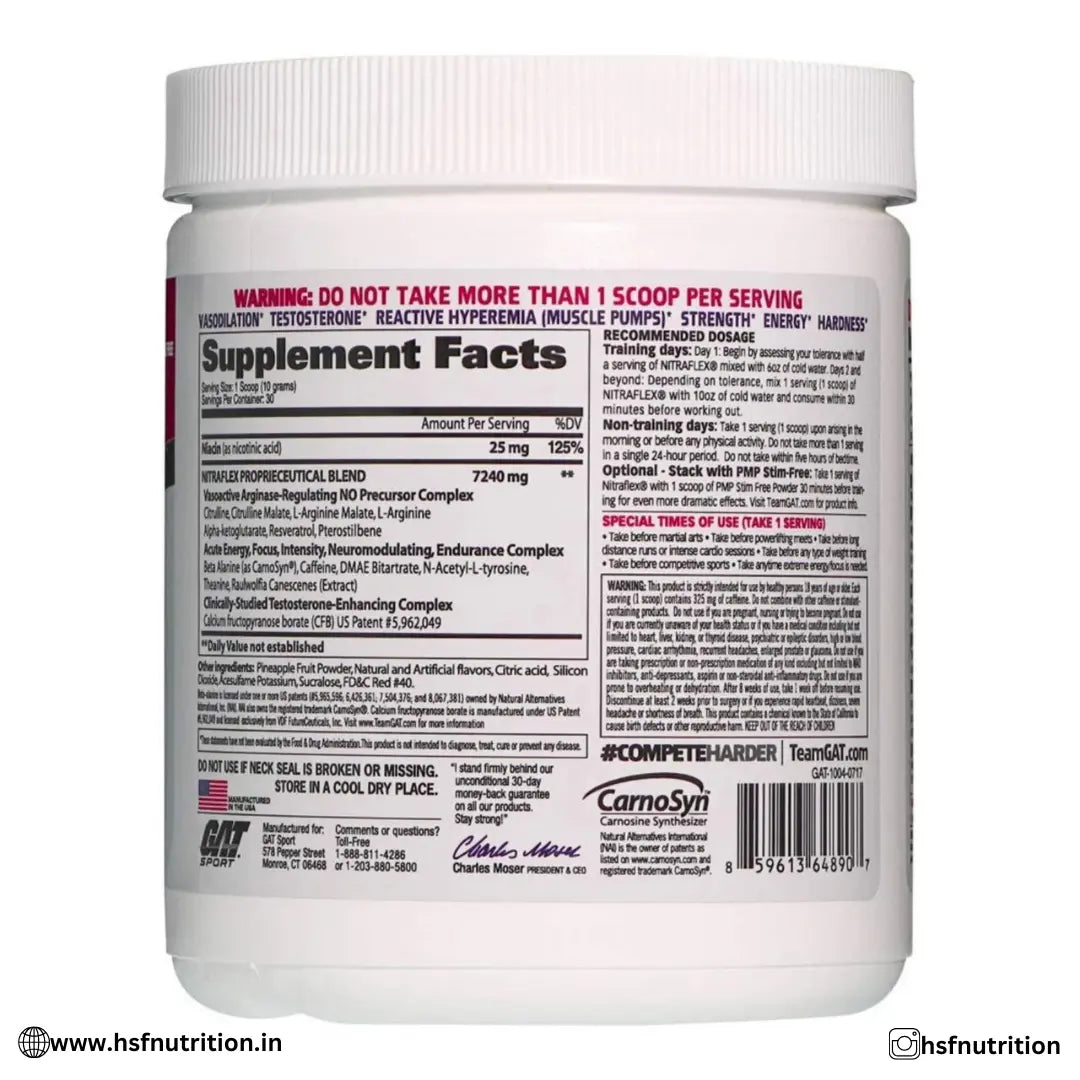 ✅Creatine Nitrate: GAT Sports Nitraflex Preworkout. A unique blend of creatine bound to nitrate, Nitraflex delivers dual benefits—creatine supports increased strength and muscle power, while nitrate enhances blood flow for intense pumps.