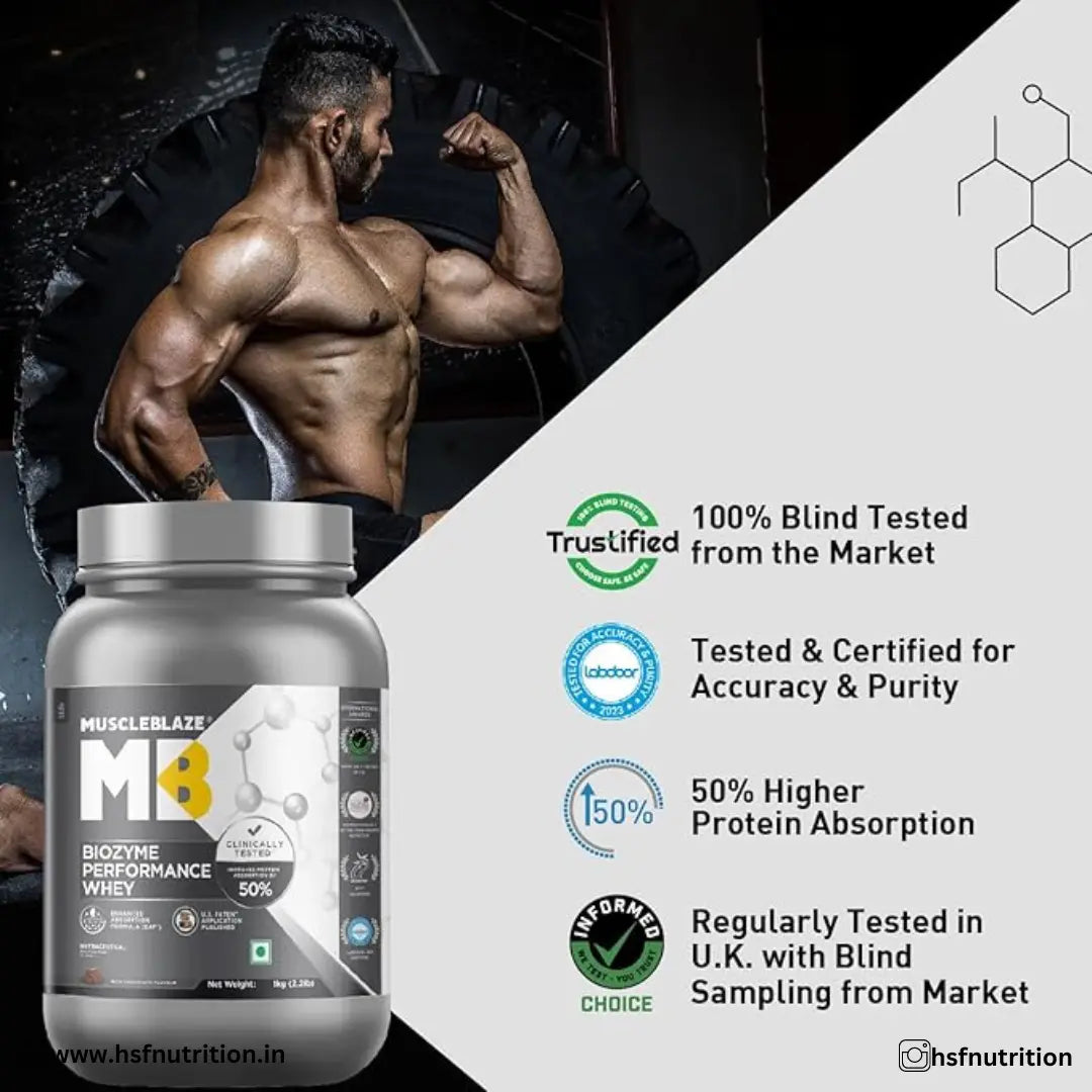 MuscleBlaze MB Biozyme Performance Whey Protein - Rich Chocolate, 1 kg - Hold Strong Fitness & Nutrition