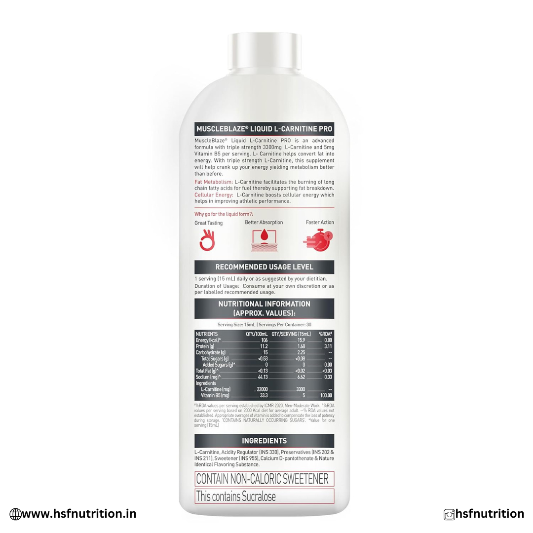 MuscleBlaze L-Carnitine Pro is an advanced liquid fat burner supplement designed to help your body convert stored fat into usable energy. It supports weight loss, stamina, and muscle preservation, making it ideal for gym-goers, athletes, and fitness enthusiasts.