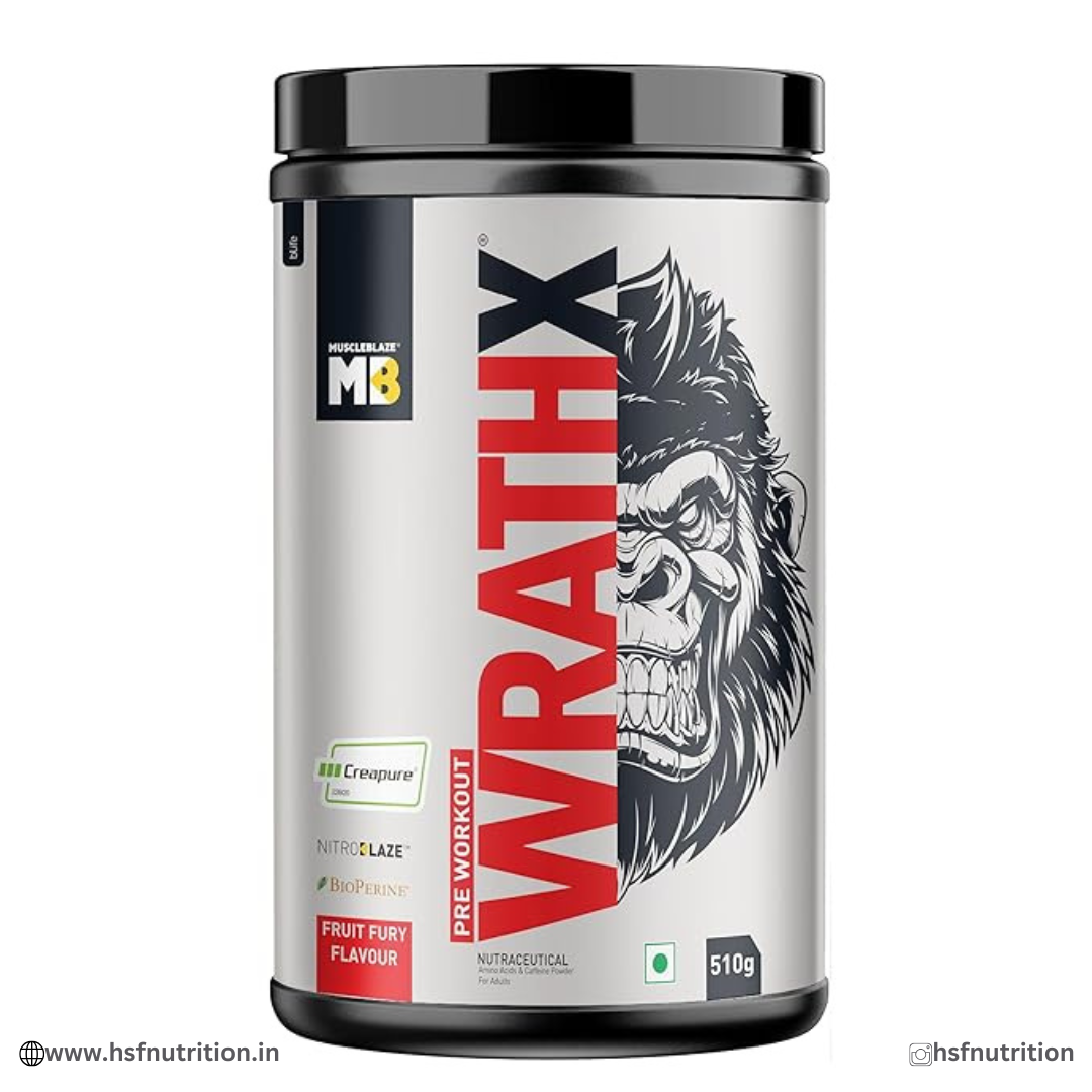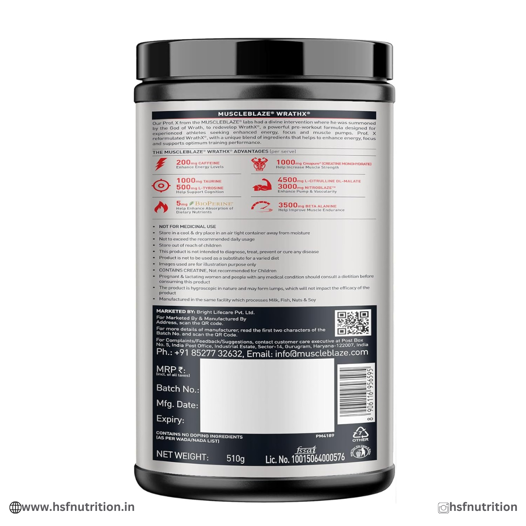 MuscleBlaze Pre Workout WrathX goes beyond just energy and performance. With ingredients like Glycine and Bioperine, it also supports fat metabolism, helping you achieve a leaner, more sculpted physique while enhancing overall workout efficiency.