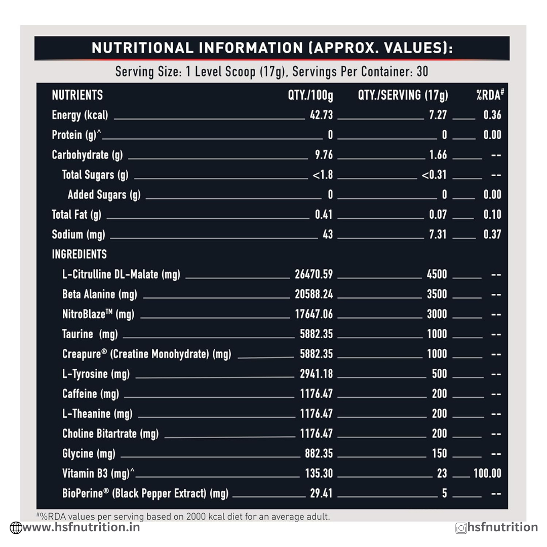 Fuel your intense workouts with a potent dose of 200mg of caffeine in each serving of MuscleBlaze Pre Workout WrathX. This powerful stimulant provides a sustained energy boost, helping you power through your toughest sets and reps with enhanced focus and stamina.
