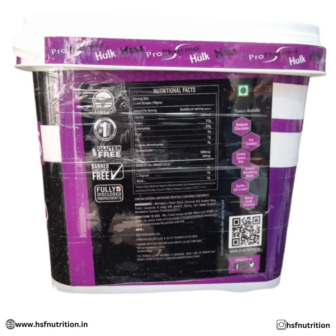 ✅Premium Protein Blend: ProPharma Hulk Mass having advanced formula includes high-quality protein isolate and whey protein concentrate, both of which promote effective muscle recovery and help boost muscle mass.