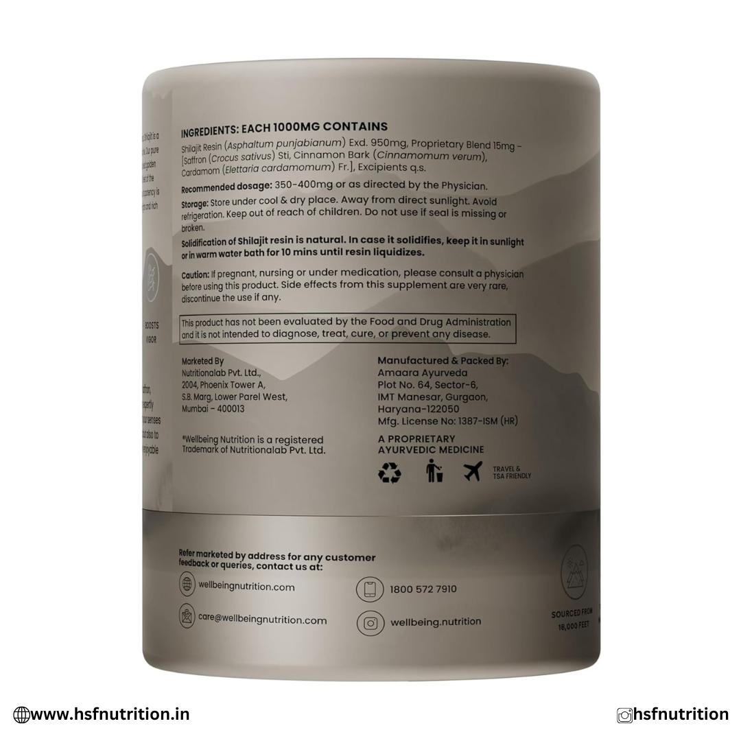 Wellbeing Nutrition Pure Himalayan Shilajit is a lab-tested, chemical-free Ayurvedic resin enriched with 75% Fulvic Acid and 85+ trace minerals to support energy, stamina, muscle strength, and overall vitality for both men and women.
