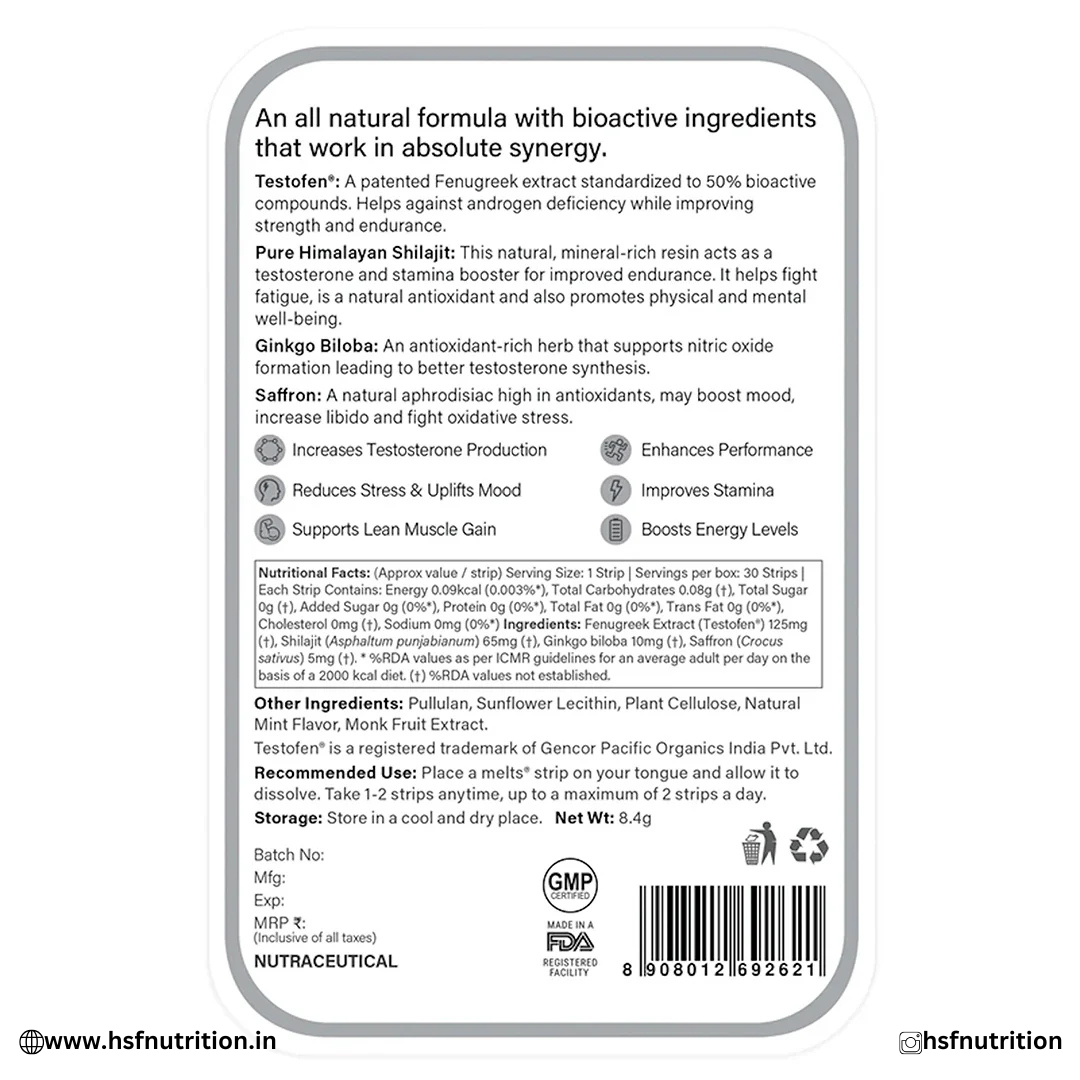 Category: Health & Wellness Tags: cool mint oral strips, energy stamina supplement, fast dissolving oral strips, fitness performance booster, ginkgo biloba supplement, hormone support supplement, hsfnutrition wellbeing nutrition, male performance supplement, male stamina supplement, male vitality supplement, Men's Health Supplement, natural testosterone booster, Natural Testosterone Support, natural vitality supplement, oral thin strip supplement, saffron supplement for men, shilajit supplement india, shilajit testosterone booster, stamina booster for men, stamina booster supplement, stress fatigue support supplement, sugar free testosterone booster, testo booster for men, testo power strips, testofen supplement, testosterone booster india, testosterone booster supplement, testosterone support supplement, vitality booster for men, wellbeing nutrition test booster, wellbeing nutrition testo power melts Brand: Wellbeing Nutrition
